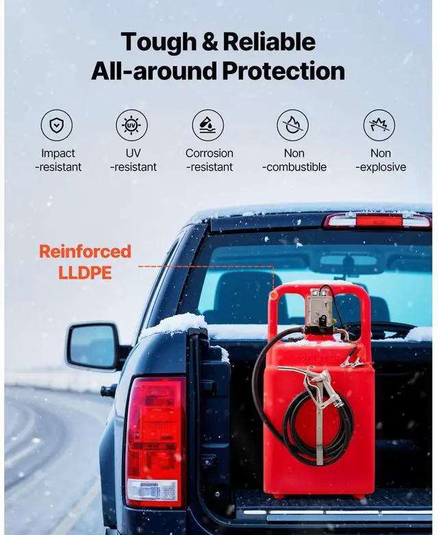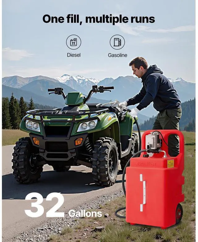 Main Materials: LLDPE, Carbon Steel,Capacity: 32GAL,Item Model Number: YHM-120G,Product Net Weight: 60.63 lbs/27.5kg,Product Dimensions: 21.26 x 18.31 x 42.13 in/540 x 465 x 1070mm (only the tank),Fueling Method: Electric Pump,Fuel Type: Diesel & Gasoline