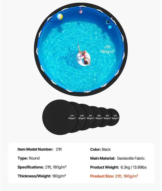 VEVOR 21ft Round Pool Liner Pad, Pool Liner Pad for Above Ground Swimming Pools, Extra-Thick Pool Mat, Prevents Punctures, Recycled Geotextile Material Underlayment Pad, Extend Liner Life