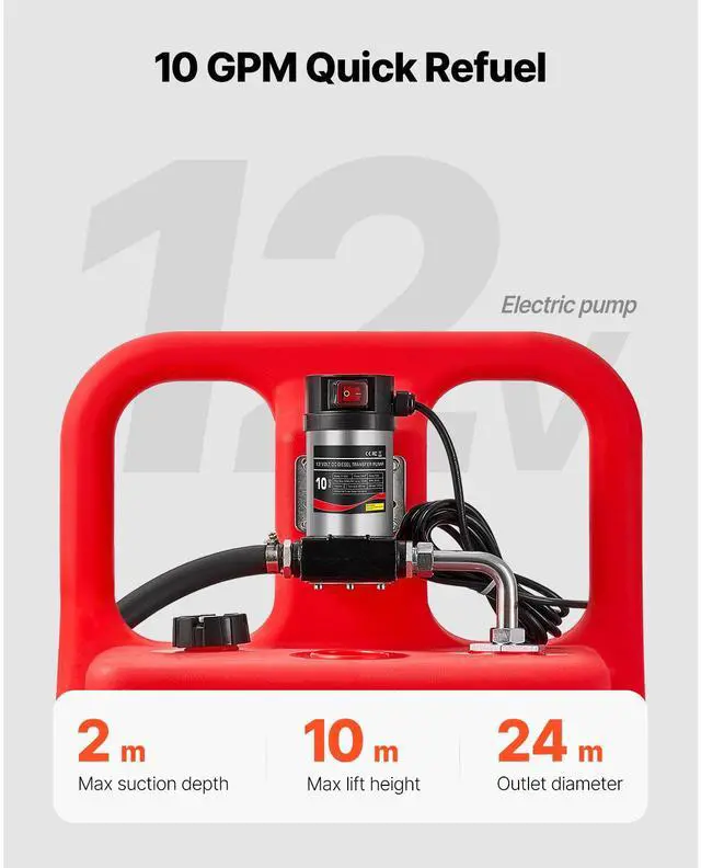 VEVOR Diesel Transfer Tank, 32 Gallon, Portable Kerosene Tank with 12V DC 10GPM Electric Transfer Pump, 13 ft Delivery Hose & Self-sealing Nozzle, Compatible with Diesel & Kerosene