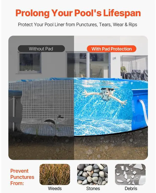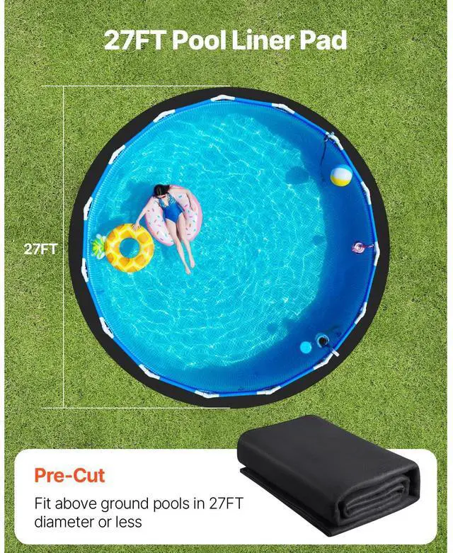 VEVOR 27ft Round Pool Liner Pad, Pool Liner Pad for Above Ground Swimming Pools, Extra-Thick Pool Mat, Prevents Punctures, Recycled Geotextile Material Underlayment Pad, Extend Liner Life