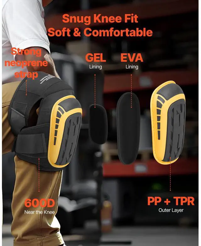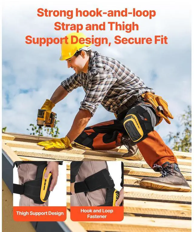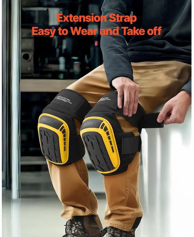 VEVOR Knee Pads for Work, Extended Heavy Duty Construction Knee Pads with 2 Extension Straps, Anti-slip Foam Gel Knee Pads, Men & Women, for Gardening Flooring Roofing and Cleaning, Yellow and Black