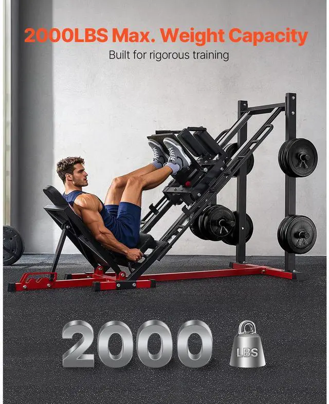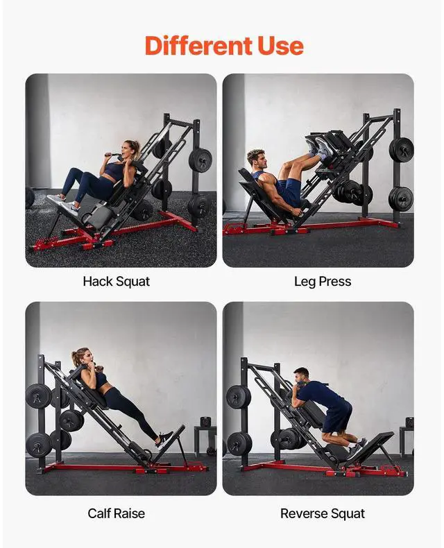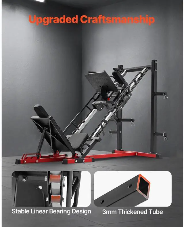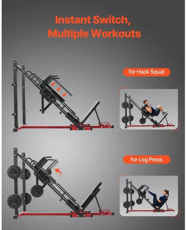VEVOR Leg Press Hack Squat Machine, Adjustable Leg Press Combo with Linear Bearing and Weight Storage, Lower Body Special for Home Gym, Leg Exercise Equipment for Quads, Hamstring, Glutes, Calve