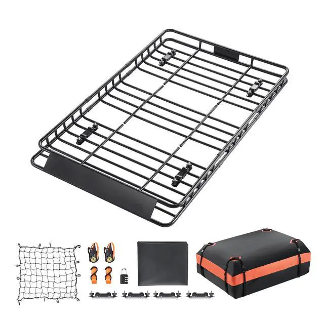 VEVOR Roof Rack Basket, 64 x 39 x 4.1 in, Universal Rooftop Cargo Carrier with 44.1 x 34.3 x 10.2 in Cargo Bag, Net, Ratchet Straps, 250 lbs Max Load Capacity Car Top Luggage Holder, for SUV Truck Car