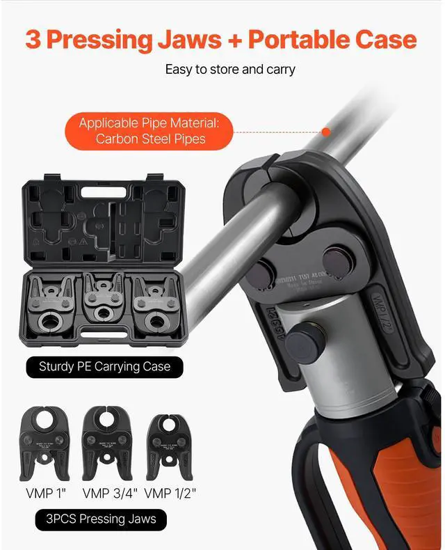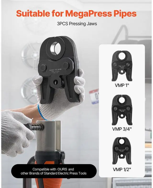 Applicable Pipe: MegaPress Pipes,Item Model Number: VMP1/2-1",Product Weight: 19.18 lbs / 8.7 kg,Applicable Pipe Range: 1/2" to 1",Product Dimensions: 15.75 x 8.86 x 2.76 in / 400 × 225 x 70 mm