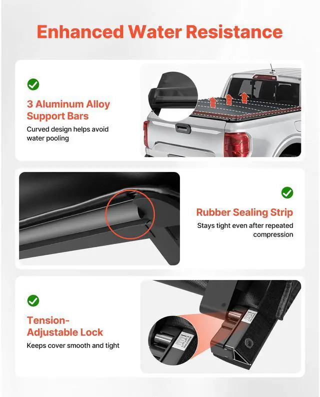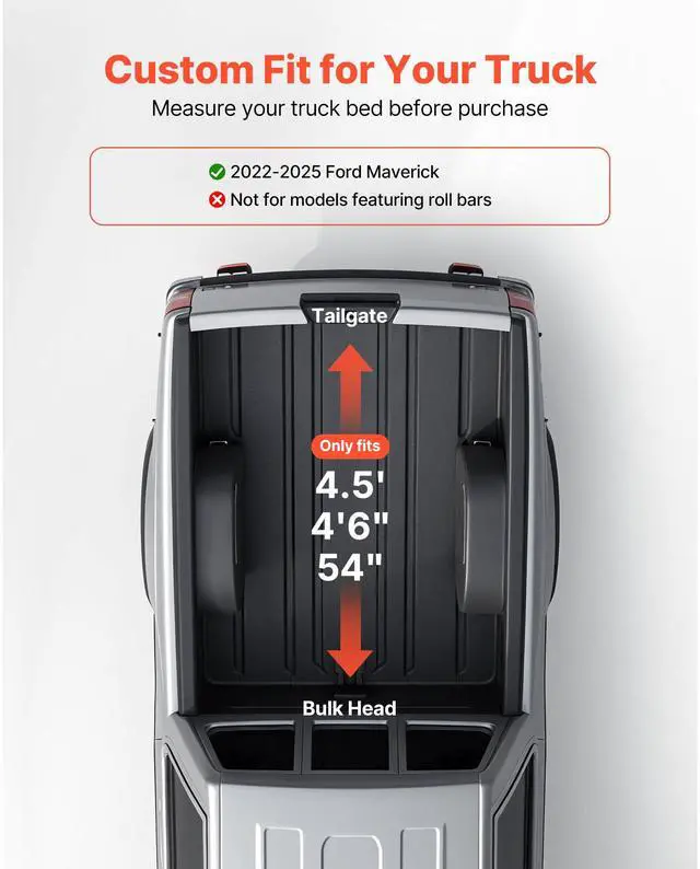 VEVOR Soft Roll-Up Truck Bed Tonneau Cover, Compatible with 2022-2025 Ford Maverick, Fits Styleside 4.5 ft (4 ft 6 in/54 in) Bed, Triple-Layer PVC Tonneau Cover with Three Aluminum Alloy Support Bars