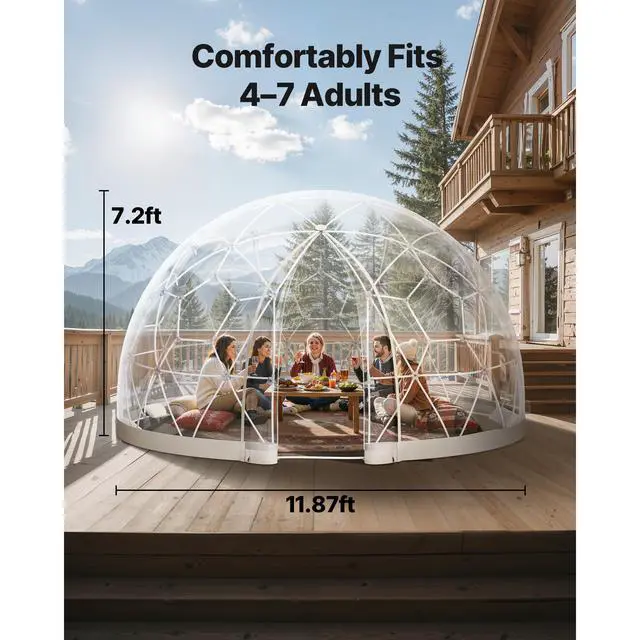 VEVOR Garden Dome Igloo, 12 x 7.2 ft Outdoor Clear Bubble Tent for 4-7 Person, Weatherproof Geodesic Dome Greenhouse with Window, PVC Igloo Tent for Backyard Patios Camping Party Wedding