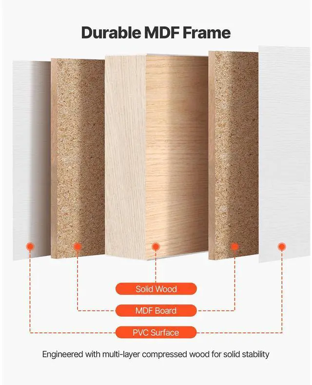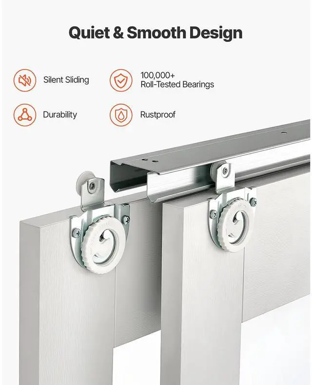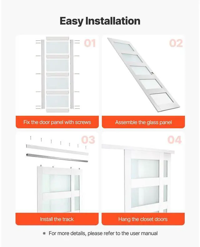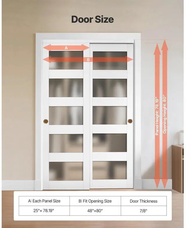 VEVOR Sliding Closet Door, 48" (Double 25") x 80", 5-Lite Frosted Glass Bypass Sliding Doors with Hardware Kit & Floor Guide, Solid Wood & MDF Slab with Waterproof PVC Surface for Closets Bedrooms