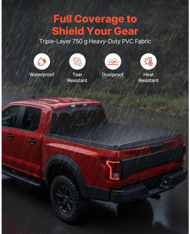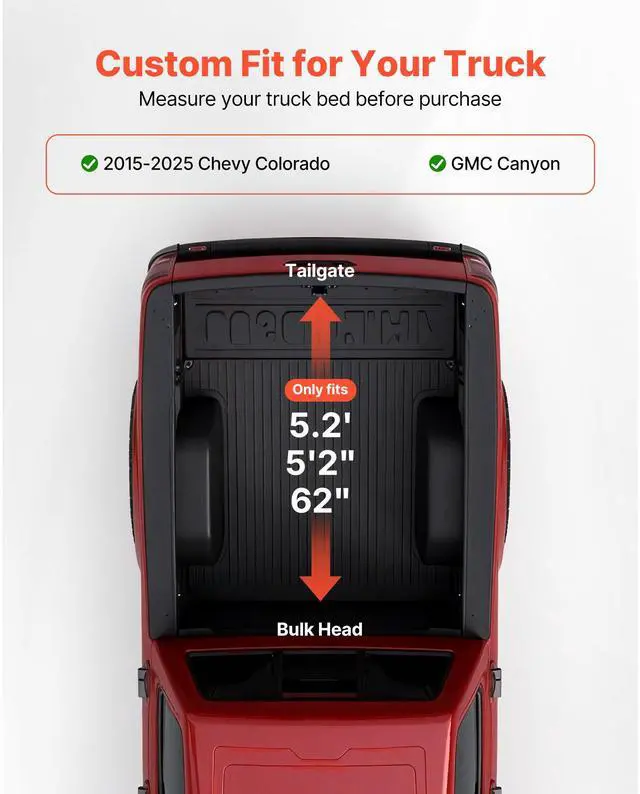 VEVOR Soft Roll-Up Truck Bed Tonneau Cover, Compatible with 2015-2025 Chevy Colorado/GMC Canyon CREW SHOR, Fits 5.2 ft (5 ft 2 in/62 in) Bed, PVC Tonneau Cover with Three Aluminum Alloy Support Bars