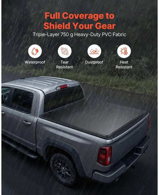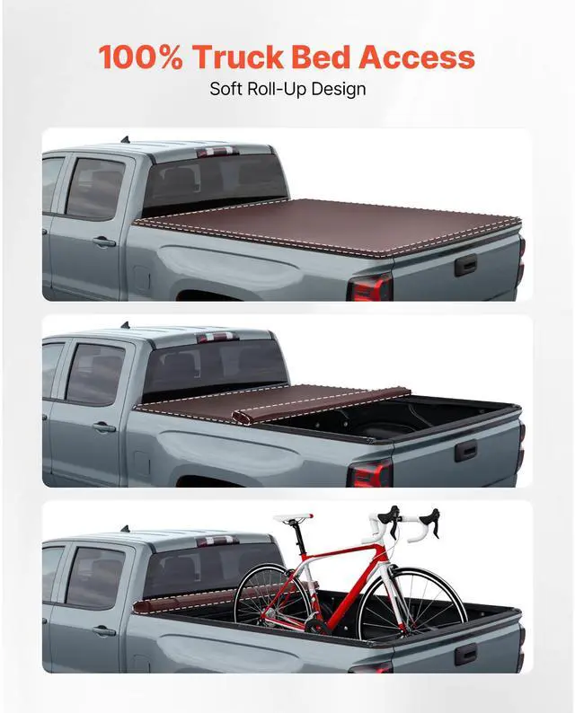 VEVOR Soft Roll-Up Truck Bed Tonneau Cover, Compatible with 2014-2018 Chevy Silverado/GMC Sierra 1500 (2019 LD/Limited), Fits 5.8 ft (5 ft 9 in/69 in) Bed, PVC Tonneau Cover with Aluminum Alloy Bars