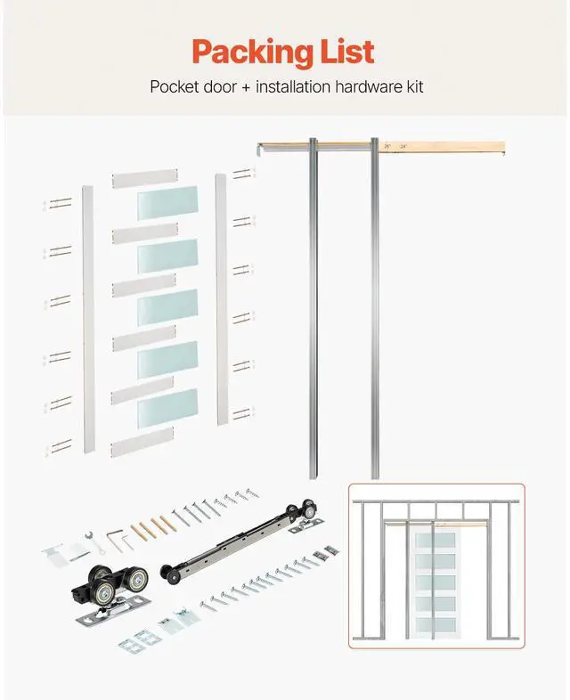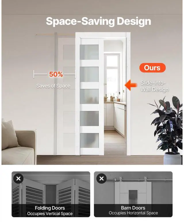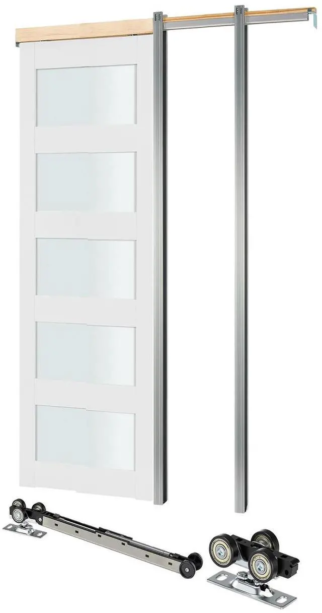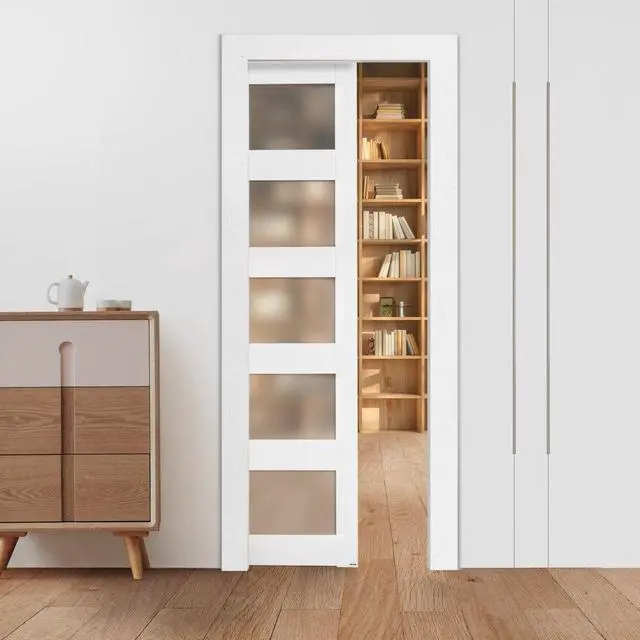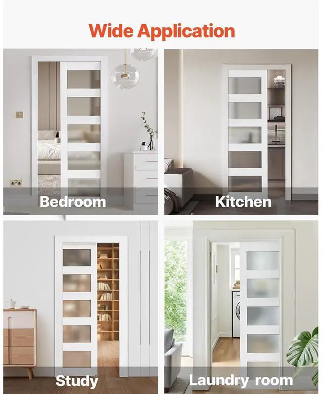 VEVOR Sliding Pocket Door, 30" x 80", 5-Lite Frosted Glass Single Sliding Door with Hardware Kit, Sturdy Solid Wood & MDF Pocket Doors Slab with Waterproof Surface for Bedroom Kitchen Study Room