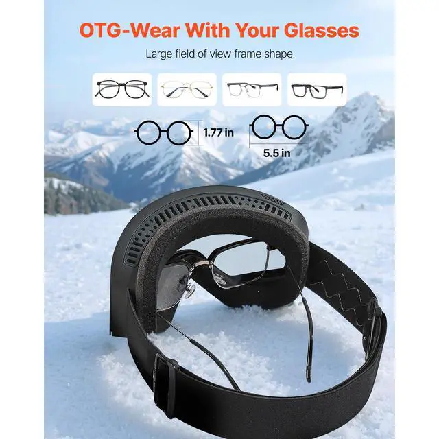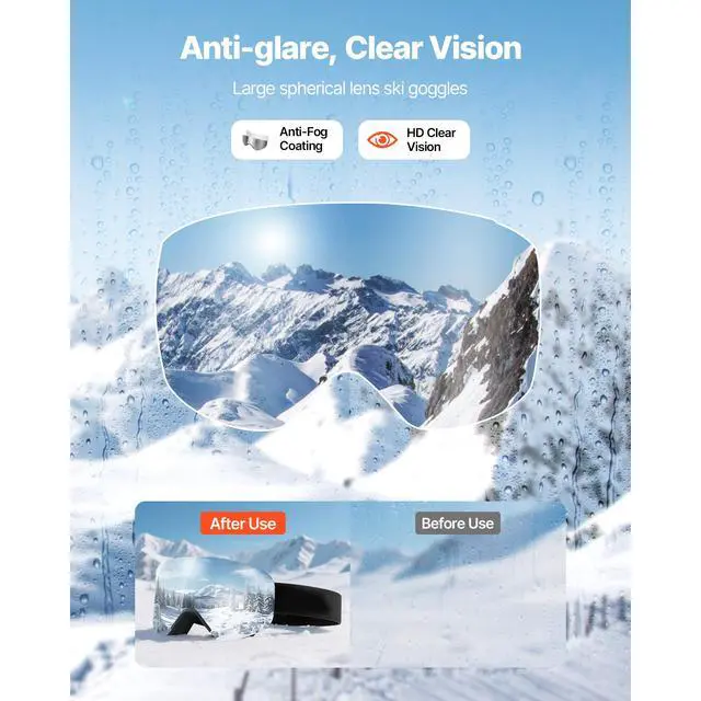 VEVOR Frameless Ski Goggles, Magnet Cylindrical Lens with Silver Mirror Revo Coating, OTG Anti fog Snow Goggles for Men Women, TPU Frame & Ventilation Structure, Fit for Skiing, Skating, Snowboarding