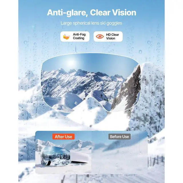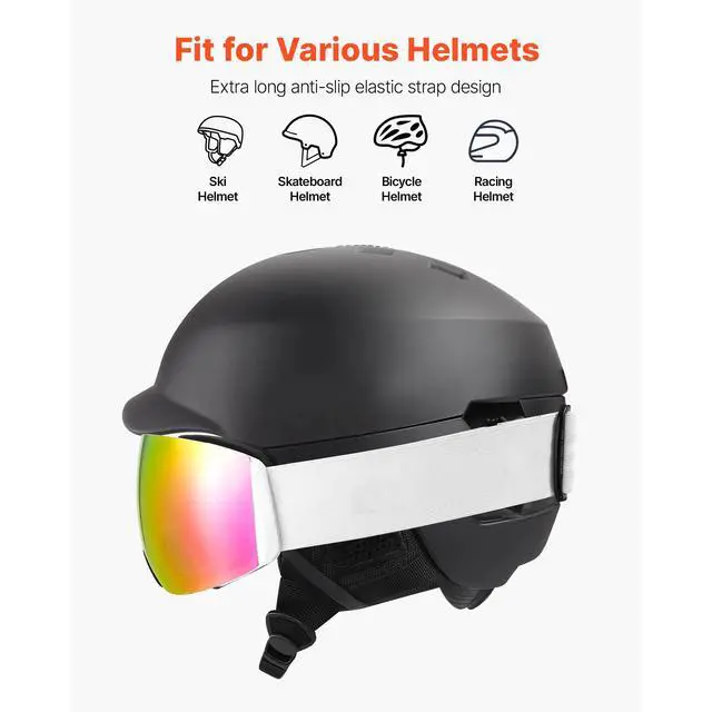 VEVOR Frameless Ski Goggles, Spherical Lens with Pink Revo Coating, OTG Anti fog Snow Goggles for Men Women Youth, TPU Frame & Ventilation Structure, Suitable for Skiing, Skating, Snowboarding
