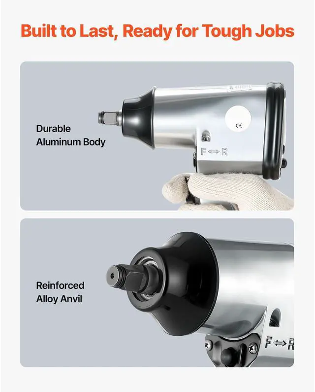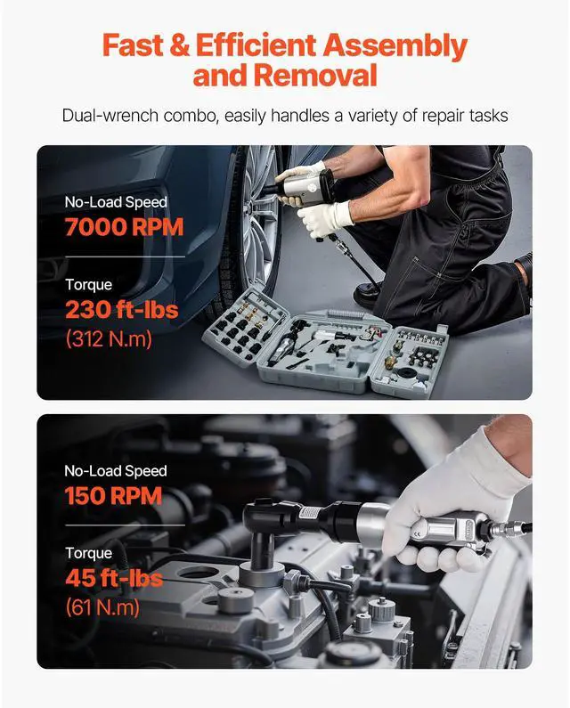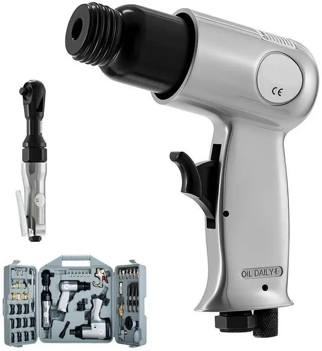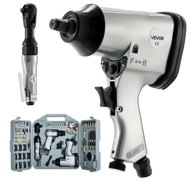 VEVOR 50 Pieces Pro Air Tool and Accessories Kit - 1/2" Air Impact Wrench, 3/8" Ratchet Wrench, 4500BPM Hammer, Blow Gun & Full Accessories for Auto Repairs, Home DIY Projects - with Storage Case