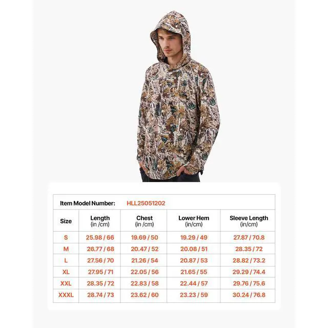 VEVOR Camo Hoodie, Large Size, Men Pullover Hooded Sweatshirt, Moisture Wicking & Breathable, Quick-dry, Hiking Fishing Shirt with Hood, Long Sleeves Hunting Shirts for Spring & Summer Outdoor Work