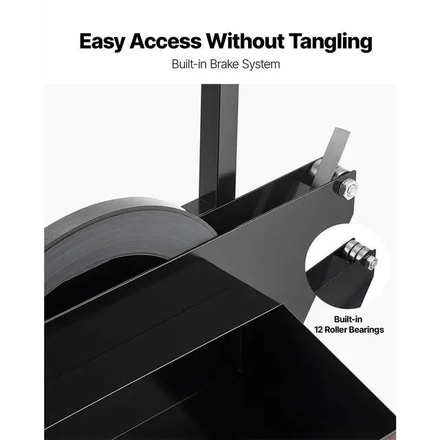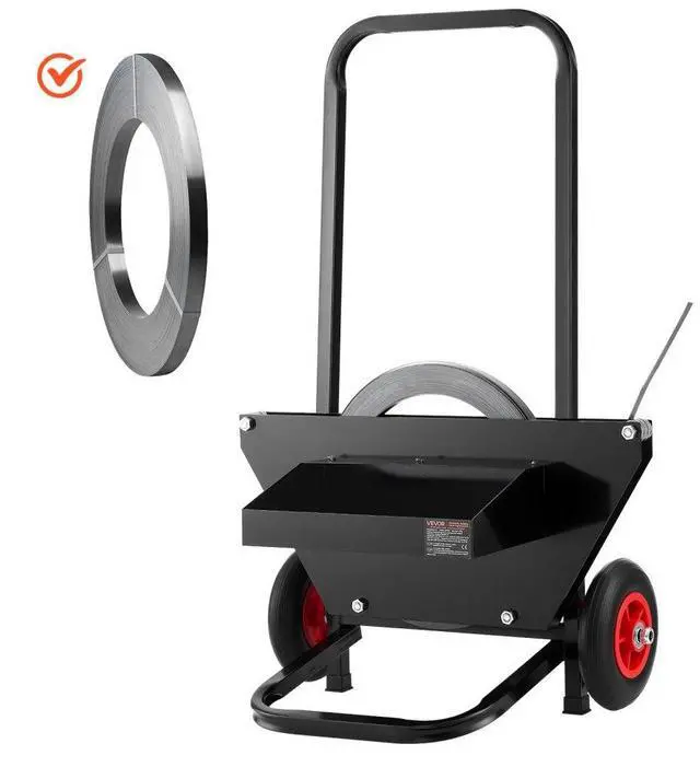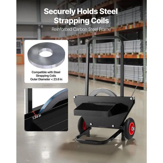 VEVOR Banding Strapping Cart, Fit for Steel Strapping Coils with 23.6 inches Core Outer Size, Heavy Duty Strapping Dispenser with Rubber Wheels, Suitable for Factory, Warehouse, Loading Area
