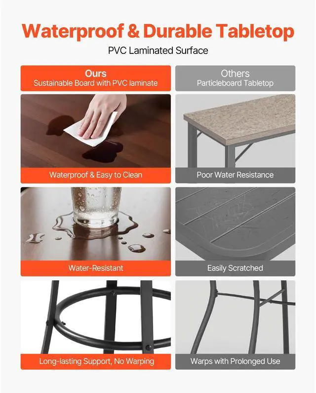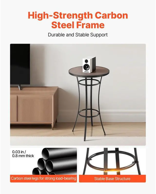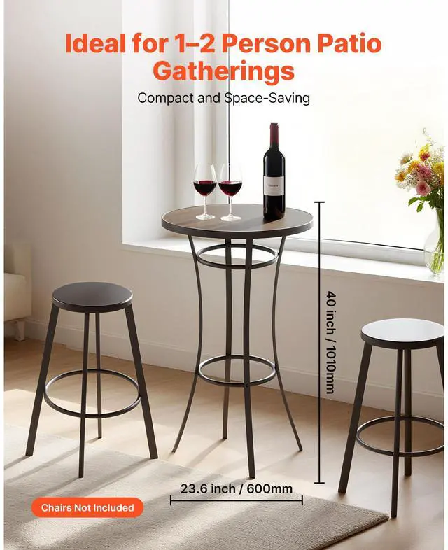 VEVOR Outdoor Round Bar Table, 23.7 in Counter Bar Height Bistro Table, Patio Dining Tables with Easy-to-Clean Top & Sturdy Metal Frame, Indoor High Top Pub Tables for Small Places, Kitchen