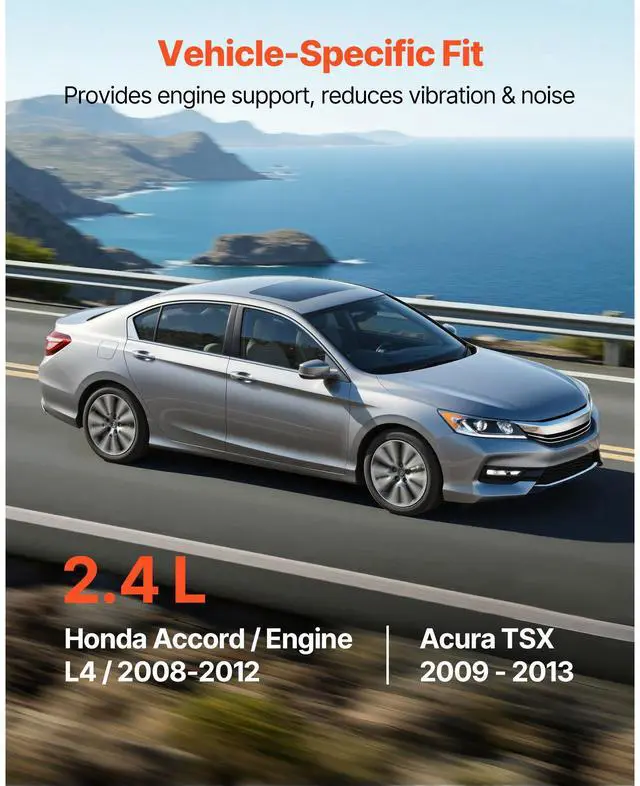 VEVOR Engine Motor Mount and Transmission Mount Kit Replacement, Set of 5, Compatible with 2008-2012 Honda Accord 2.4L L4 and 2009-2013 Acura TSX 2.4L, Replace OE# A4565 A4572 A4570 A4584 A4561