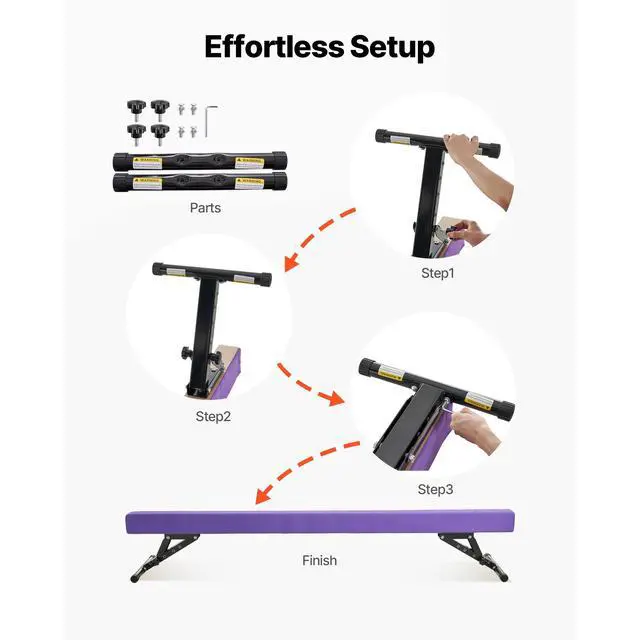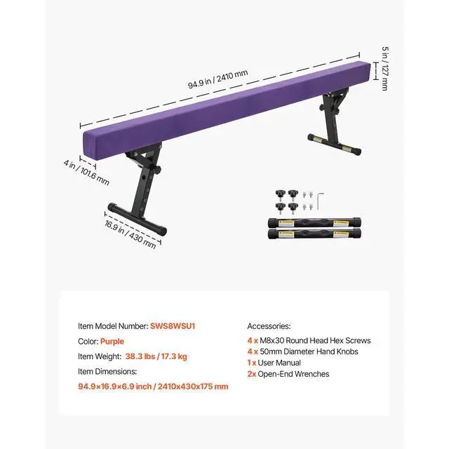 VEVOR Adjustable Balane Beam for Kids, 8FT Gymnastics Beam, High and Low Floor Beams of 5 Adjustable Heights for All Gymnastic Levels, Professional Gymnastic Equipment for Home and Gym Center, Purple