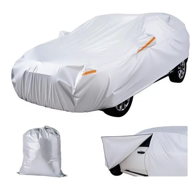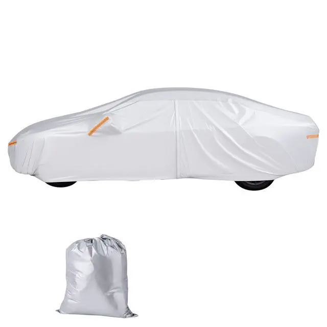 VEVOR Car Cover, Car Cover Waterproof for Dodge Challenger Full Size Sedan, Custom-fit All Weather Sun Rain Wind Dust Snow Protection Full Exterior Covers with Door Zipper and Cotton Lining, Silver