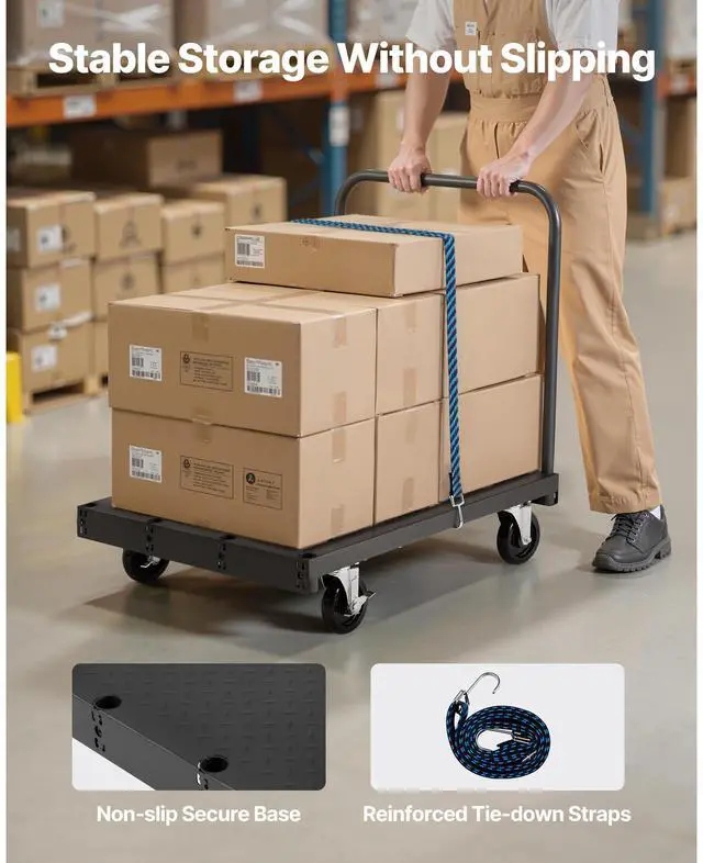 Item Model Number: DT02,Maximum Load Capacity: 1800 lbs / 816.5 kg,Flatbed Cart Handle: 1.1 x 23.5 x 28.7 in / ø28 x 598 x 728 mm,Dimensions: 36 x 24 x 33.8 in / 914 x 610 x 858 mm (Double-Bar Mode),Side Support Handles: 1.1 x 35.5 x 28.7 in / ø28 x 902 x 728 mm,Net Weight: 53.6 lbs / 24.3 kg