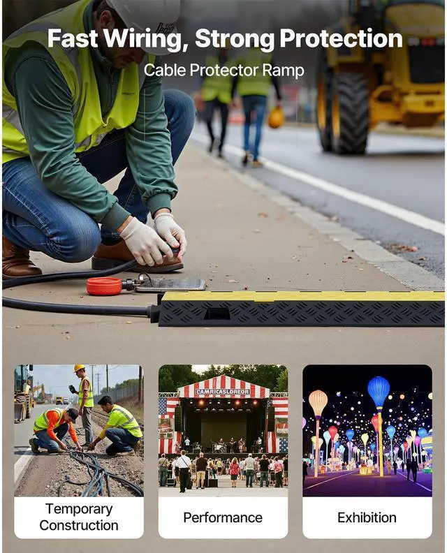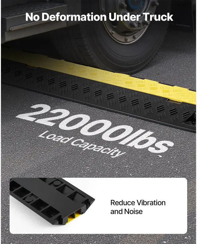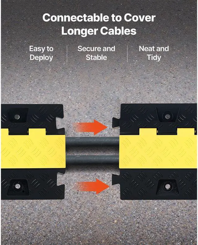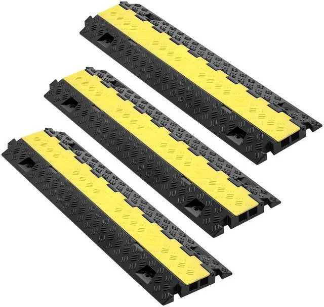 VEVOR Cable Protector Ramp, 22,000 lbs/axle Capacity, 2 Channel Heavy Duty TPU Cord Hose Wire Cover, 1.2 x 1.1 in Channel, Traffic Speed Bump with Flip-Open Top Cover, for Indoor Outdoor Use, 3 Pack