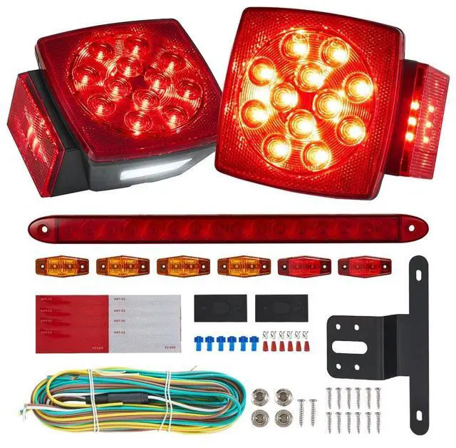 VEVOR Trailer Lights, 12V LED Trailer Tail Lights Kit with Stop Brake Turn Tail License Plate Clearance Lamp, Waterproof Tow Lighting Kit with Wiring Harness for Boat Truck Camper RV Snowmobile Bus