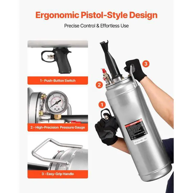 VEVOR Portable Tire Bead Seater, 2.6 Gal/10 L Air Bead Blaster, Handheld Tire Inflator Tool, 87-116 PSI Operating Pressure, Trigger Seating Inflator for Car, Compact SUV, Light Truck, E-Bike, RV, ATV