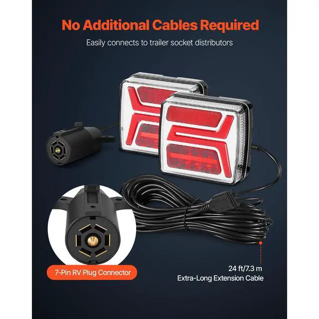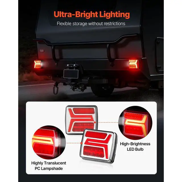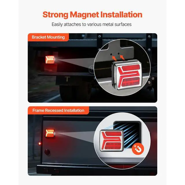 VEVOR Trailer Lights, 2PCS 12V Square Magnetic LED Trailer Tail Lights Kit with Stop Brake Turn Tail License Lamp, Waterproof Tow Lighting Kit with Wiring Harness for Boat Truck Camper RV Snowmobile