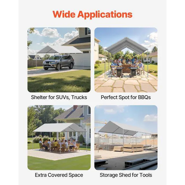 VEVOR Carport Replacement Canopy, 10 x 20 ft Potable Garage Tent Top Tarp, UV-Resistant & Waterproof Car Shelter Tarp, Heavy Duty Car Port Cover with Ball Buggees, Grey, Frame Not Included