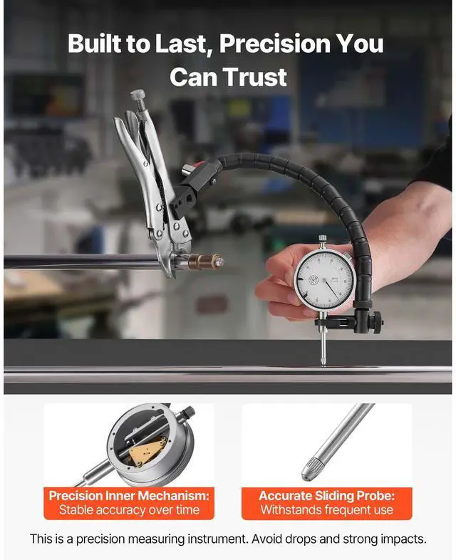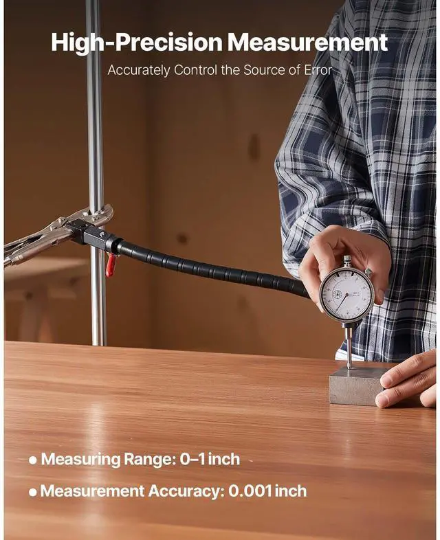 VEVOR Dial Test Indicator with 360-Degree Flexible Arm and 360-Degree Locking Pliers, 0.001 inch Accuracy, 0-1 inch Range, Professional for Machine Set-Up, Narrow Area Measurement, Storage Case