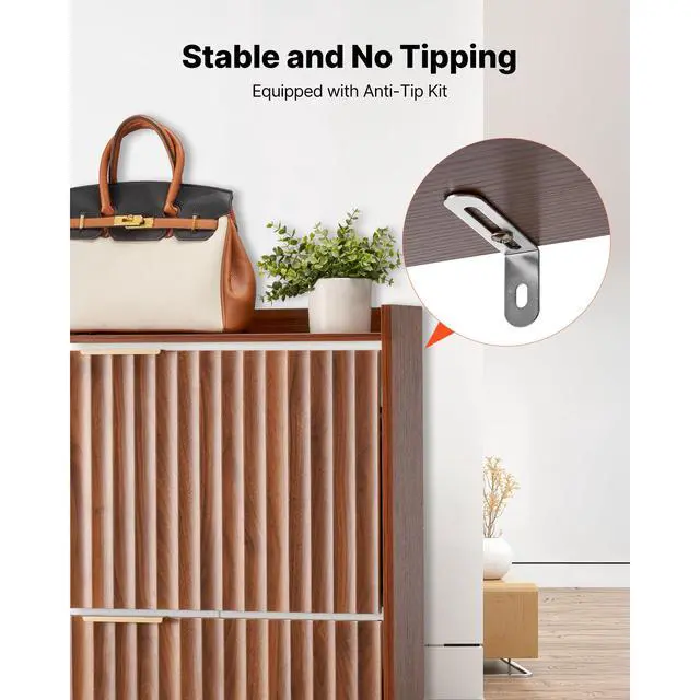 VEVOR Shoe Cabinet with 2 Flip Drawers, Mid-Century Shoes Storage Cabinet with Anti-Tipping Device, Freestanding Fluted Shoe Organizer, Ideal for Entrance, Hallway, Bedroom, Living Room, Walnut