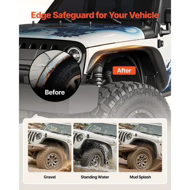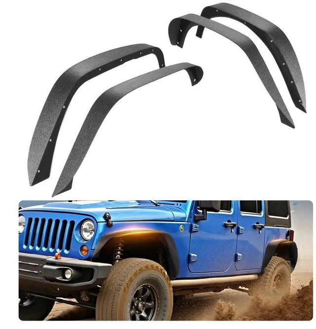 VEVOR Fender Flare, Front & Rear Fender Flares Compatible with 2007-2018 Jeeps JK/JKU 2/4 Doors, Fine-Textured Black Paintable Off-Road Steel Liner Set, Fenders for Jeep JK, Rust-Resistant Coating