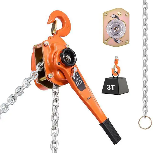 VEVOR Manual Lever Chain Hoist, 3T 6600LBS Capacity Heavy Duty Come Along, 10FT Lift G80 Alloy Steel Chain With Dual Pawl Mechanical Brake,360°Rotating Hooks, for Warehouse Construction Garage