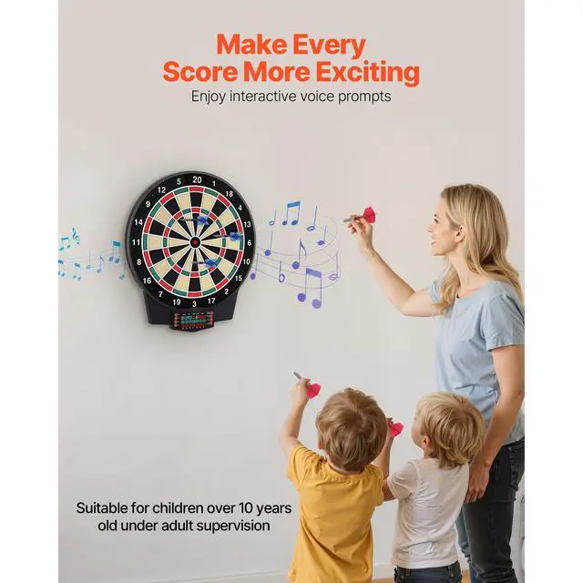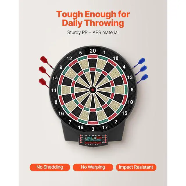 VEVOR Electronic Dart Board, 15.5" Target Dartboard with 43 Games & 320+ Variations for Up to 8 Players, 6 Dart Shafts with Flights & 50 Soft Tips, Color LCD Scoring Screen for Home Party Game Room
