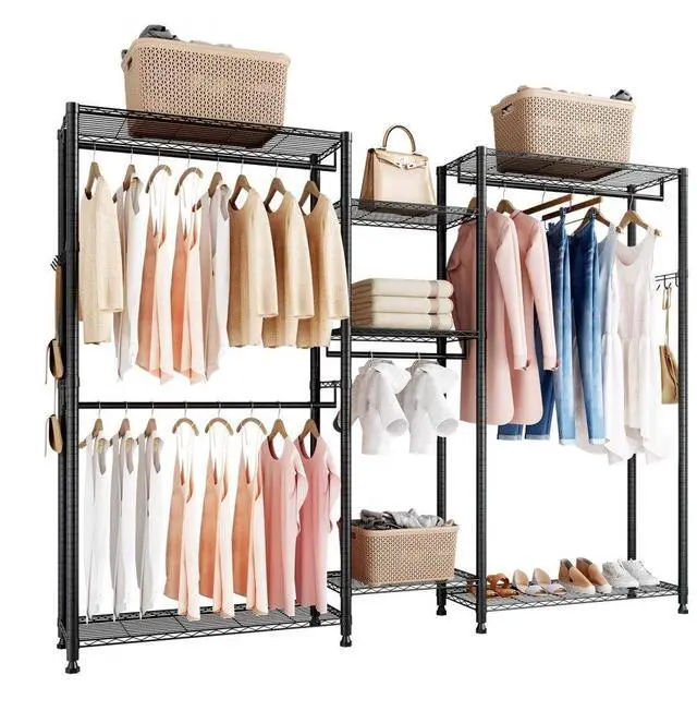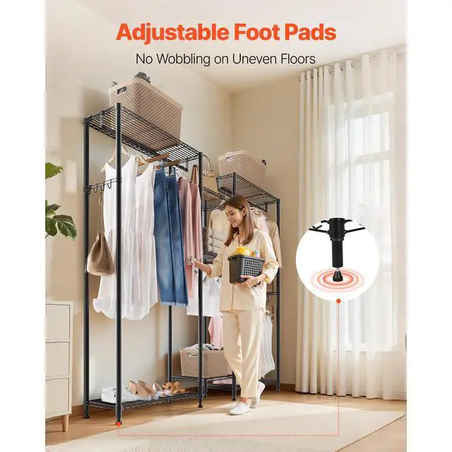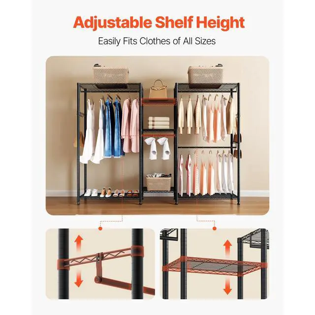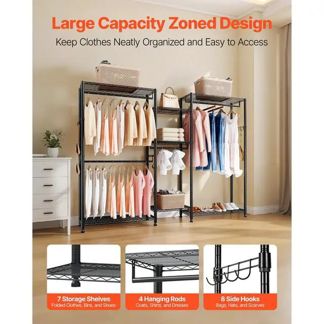 VEVOR Clothing Garment Rack, Heavy Duty Closet Wardrobe, 7 Adjustable Tiers Clothes Racks with Steel Frame, 850 lbs Load Capacity Clothes Rack with 4 Hanging Rods for Bedroom, Clothing Store, Hallway