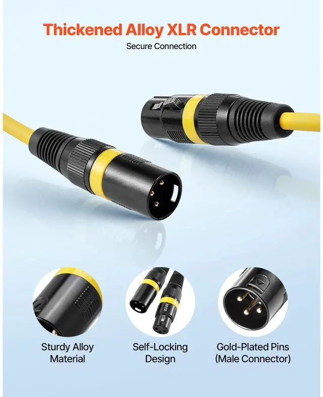 VEVOR XLR Cable 6.5 ft, 10 Pack, Shielded Balanced DMX Male to Female Microphone Cables, Gold-Plated 3-Pin XLR Mic Speaker Cord Wire, for Stage Lighting, Microphones, Amplifier, Mixer, Speaker Systems