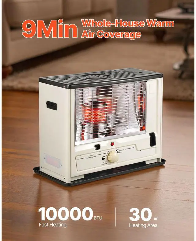 VEVOR 10000 BTU Indoor & Outdoor Kerosene Heater, Portable Space Heater with Auto Shut-Off & Adjustable Flame & Tip-Over, for Home, Garage, Basement, Camping, Workshop and Emergency,Black