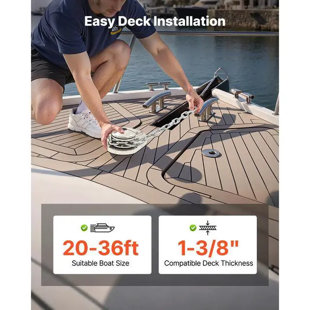 VEVOR Vertical Fishing Windlass, 12V DC 1100W, Windlass Anchor Systems Fit for 1/4-Inch Chain or 9/16 & 5/8 Inch Nylon Rope, Max Pull 700 lbs, 316 Stainless Steel Construction, for Boats 20-36 ft