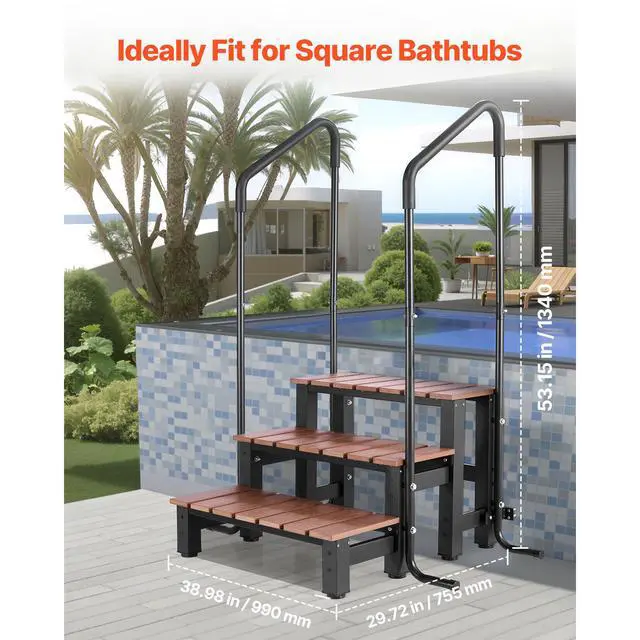 VEVOR Hot Tub Steps with Handrail, 3-Step Spa Outdoor Stairs, Heavy Duty 25.2 inch Wide Above-Ground/Inflatable Pool Ladder with 550 lbs Weight Capacity, Multi-Use for Porch, Patio, Deck, Trailers