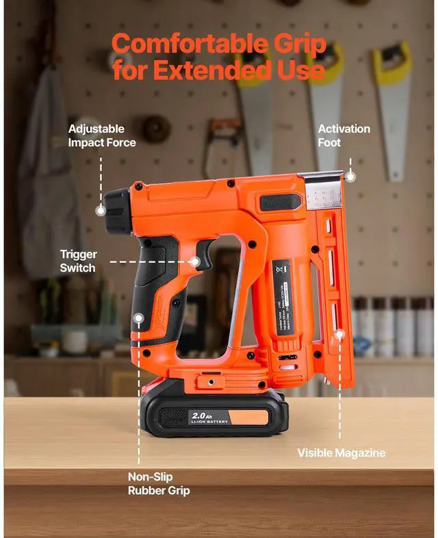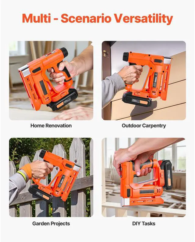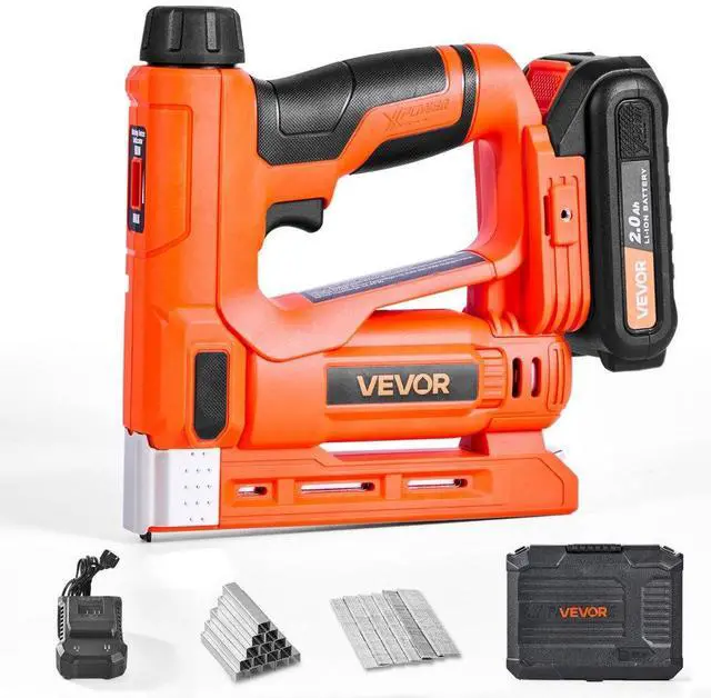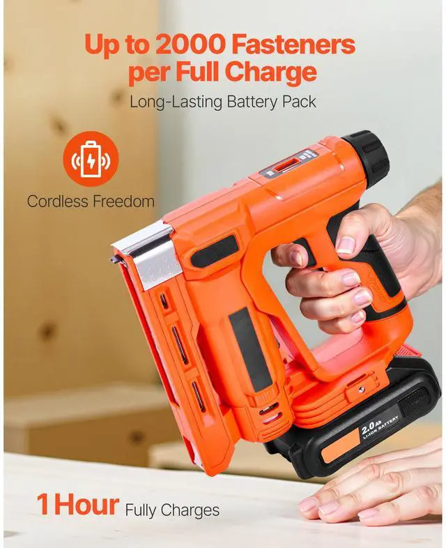 VEVOR Cordless Brad Nailer, 2-in-1 Nail Gun Staple Gun, 18 Gauge 5/8 inch, Includes 1000 Pcs Staples and 1000 Pcs Nails, with Battery and Charger, Non-Slip Rubber Grip, for Woodworking DIY Projects