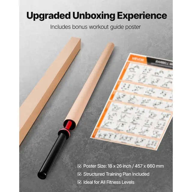 VEVOR 7FT Barbell Bar, Fits 2-Inch Weight Plates, Barbell Bar with Knurled Grip for Strength Training, Weightlifting, Squat, Deadlift, Bench Press, Curl, Overhead Press, 1000lbs/453kg Capacity