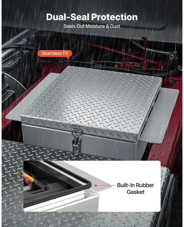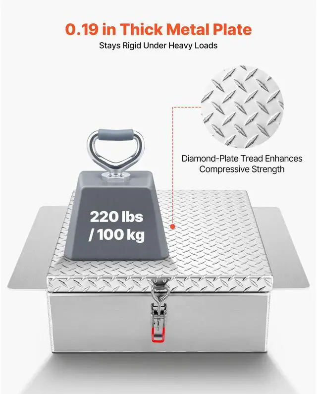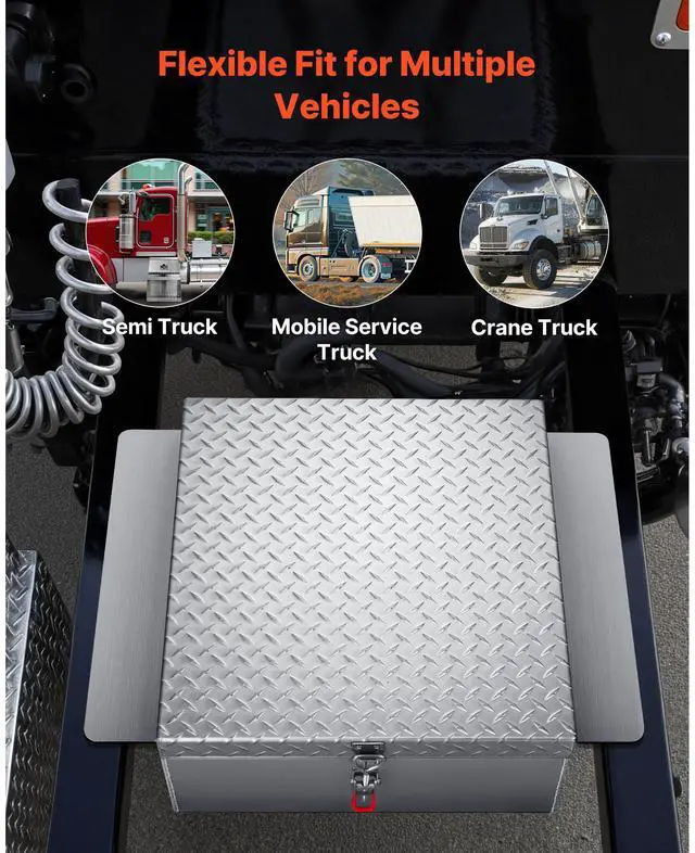 VEVOR Truck Bed Tool Box, Heavy Duty Aluminum Tool Box with Diamond Plate, Storage Toolbox Chest Organizer Supports up to 220 lbs, Ideal for Pickup, Truck Bed, RV, Trailer, 30.3 x 24 x 9 in, Silver