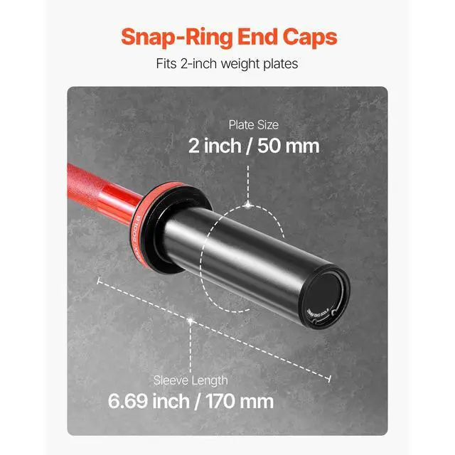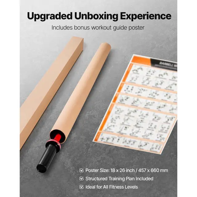 VEVOR 4FT Barbell Bar, Fits 2-Inch Weight Plates, Barbell Bar with Knurled Grip for Strength Training, Weightlifting, Squat, Deadlift, Bench Press, Curl, Overhead Press, 550lbs/226kg Capacity