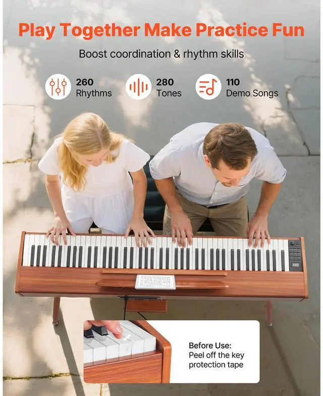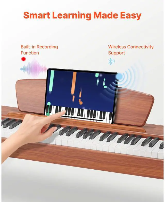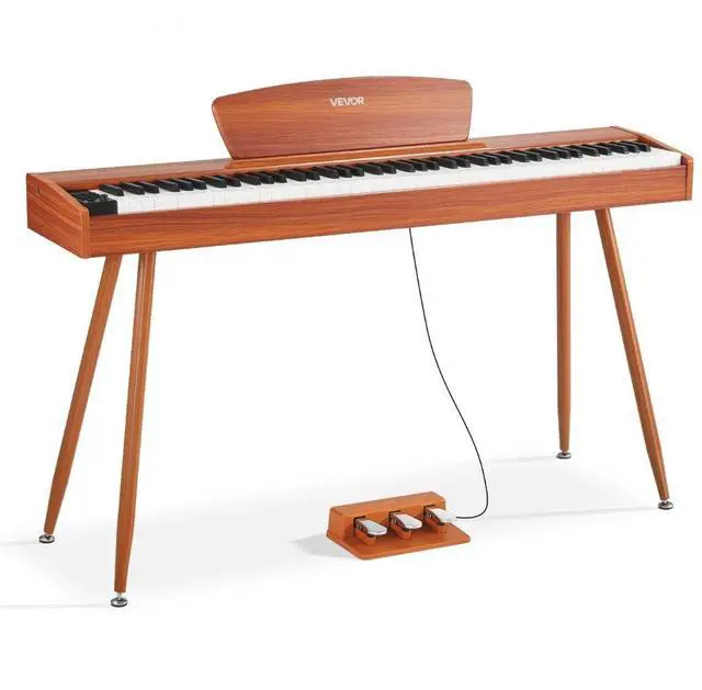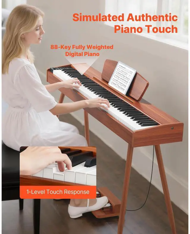 VEVOR Weighted Digital Piano, 88 Keys Fully Weighted, Electric Piano Keyboard with Sheet Music Stand, Triple Pedal, Power Adapter, 280 Tones, Support Wireless Connection, for Beginners, Wood Color