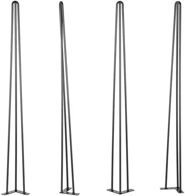 VEVOR Hairpin Table Legs 40\" Black Set of 4 Desk Legs 880lbs Load Capacity (Each 220lbs) Hairpin Desk Legs 3 Rods for Bench Desk Dining End Table Chairs Carbon Steel DIY Heavy Duty Furniture Legs