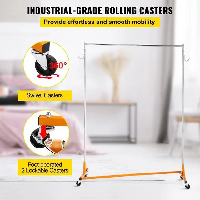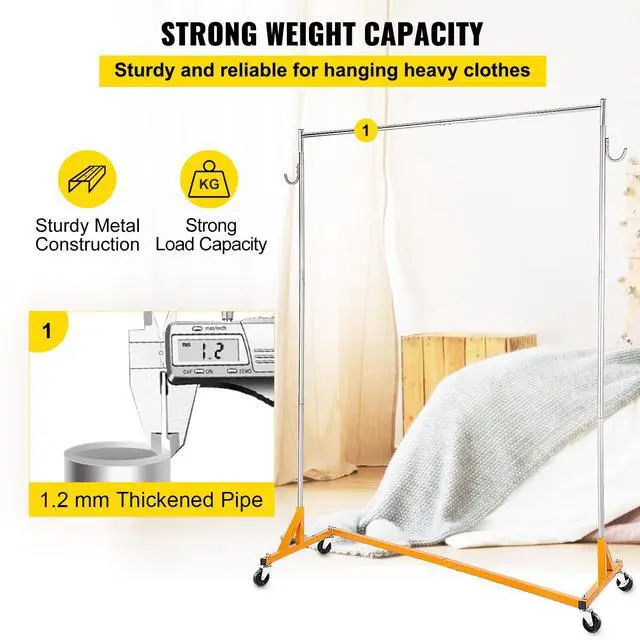 Caster Diameter: 3" / 7.6 cm,Weight Capacity: 300 lbs / 136 kg,Size: 23.6" x 65" x 74" / 60 x 165 x 188 cm,Color: Orange,Model: SZOON3611,Material: Stainless Steel + Q235 Steel,Height: 74"/188 cm,Hang Rail: Single Rail,Caster: Four Swivel Casters (2 Lockable),Weight: 54.7 lbs / 24.8 kg