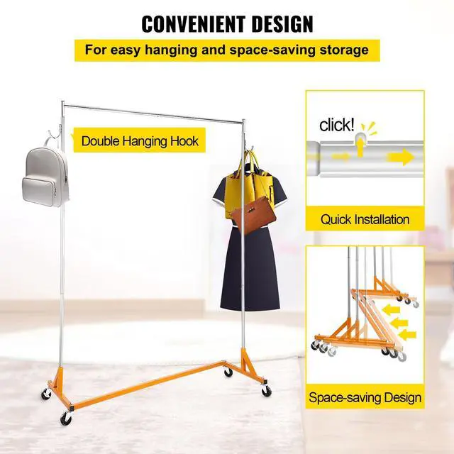 VEVOR Z Rack, Industrial Grade Z Base Garment Rack, Height Adjustable Rolling Z Garment Rack, Sturdy Steel Z Base Clothing Rack with Lockable Casters, for Home Clothing Store Display Orange (3 Sets)