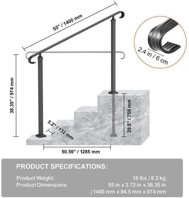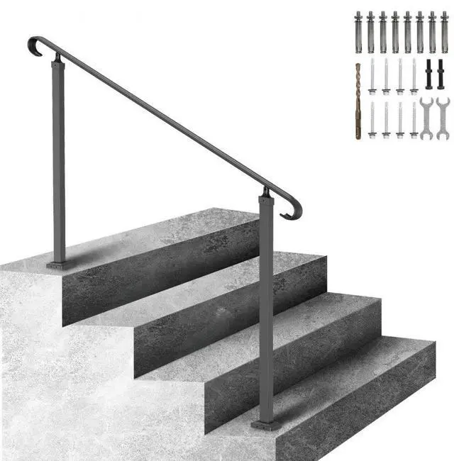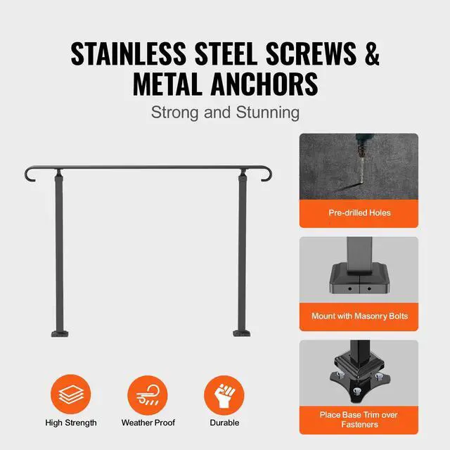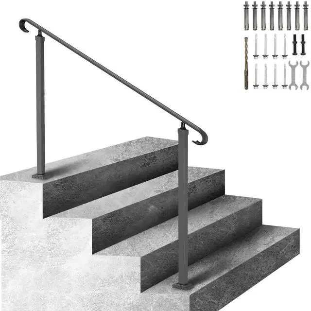 VEVOR Handrails for Outdoor Steps, Fit 3-5 Steps Outdoor Stair Railing, Wrought Iron Handrail, Flexible Front Porch Hand Rail, Black Transitional Hand railings for Concrete Steps or Wooden Stairs