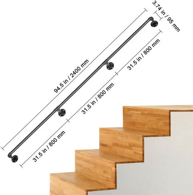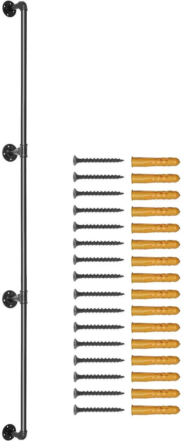Total Length: 8 FT/2.4 m,Item Weight(Each): 1.85lbs/ 0.84 kg,Pipe Thickness: 0.06/ 1.5 mm,Pipe Diameter: 1.26/ 32 mm,Color: Black,Model: VV-GYGFS-HS8YC,Wall Mount Support: 4 PCS,Material: Carbon Steel+ Matte Finish,Load Capacity (Each): 440lbs/ 200 kg,Stand out Width: 3.74/ 95 mm,Pre-hole Diameter: 0.23/ 6 mm,Pipe Amount: 3 PCS