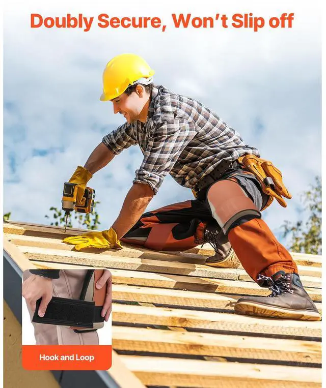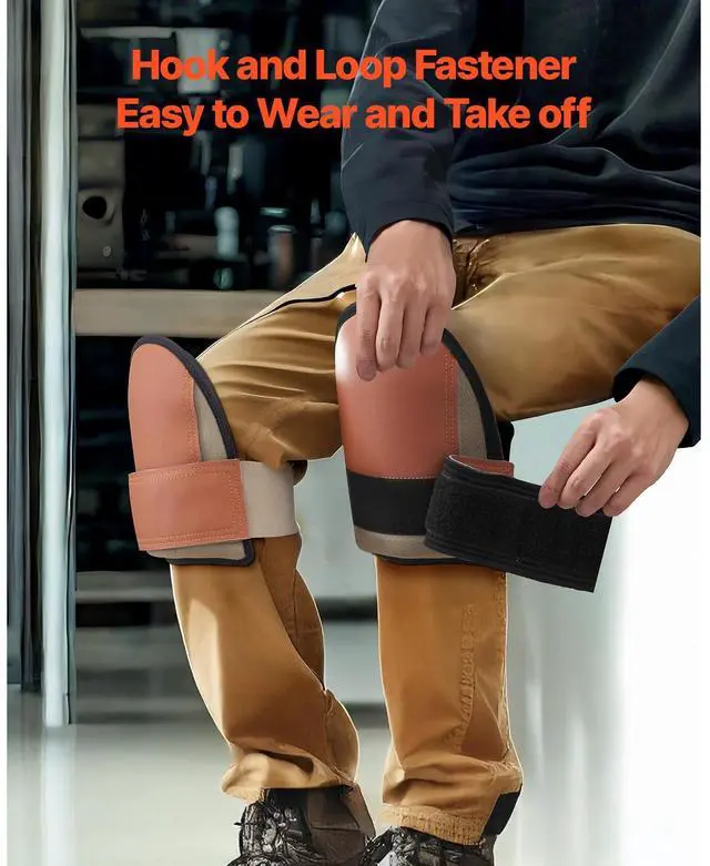 VEVOR Knee Pads for Work, Durable Leather Construction Pads, Machine Washable Work Knee Pads, Easy to Wear and Take off, Extra Thick Knee Support for Gardening Flooring and Cleaning, Black and Brown